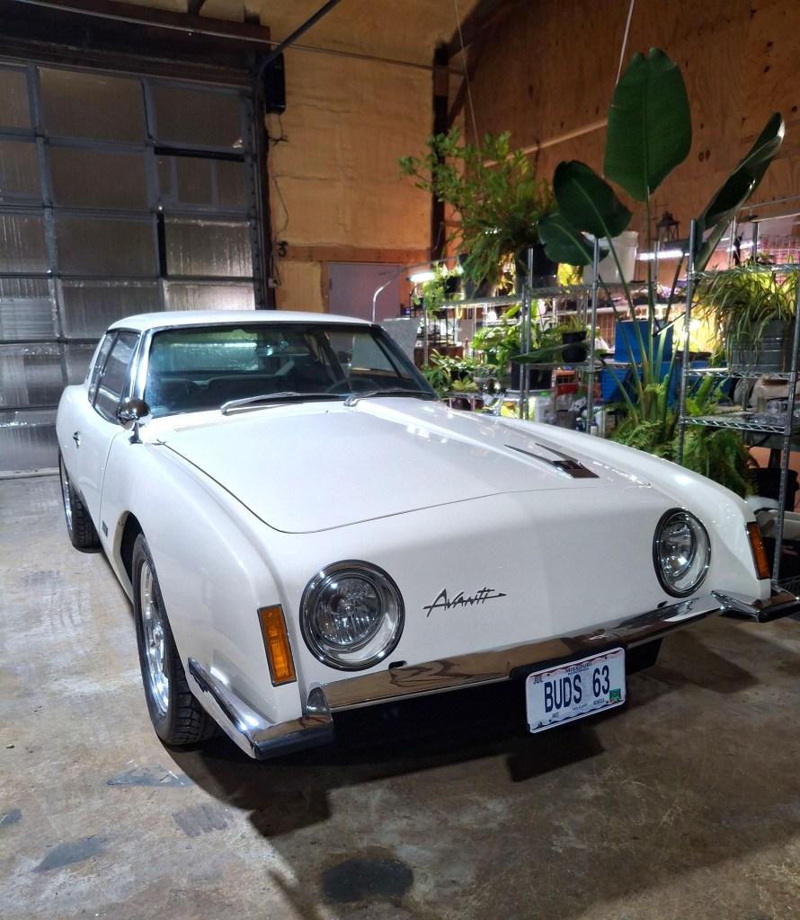 1964 in Avanti white factory color. Supercharged 289 engine bored out and upgraded to 299 with carb replacement of a modern Sniper II fuel injection and timing control.